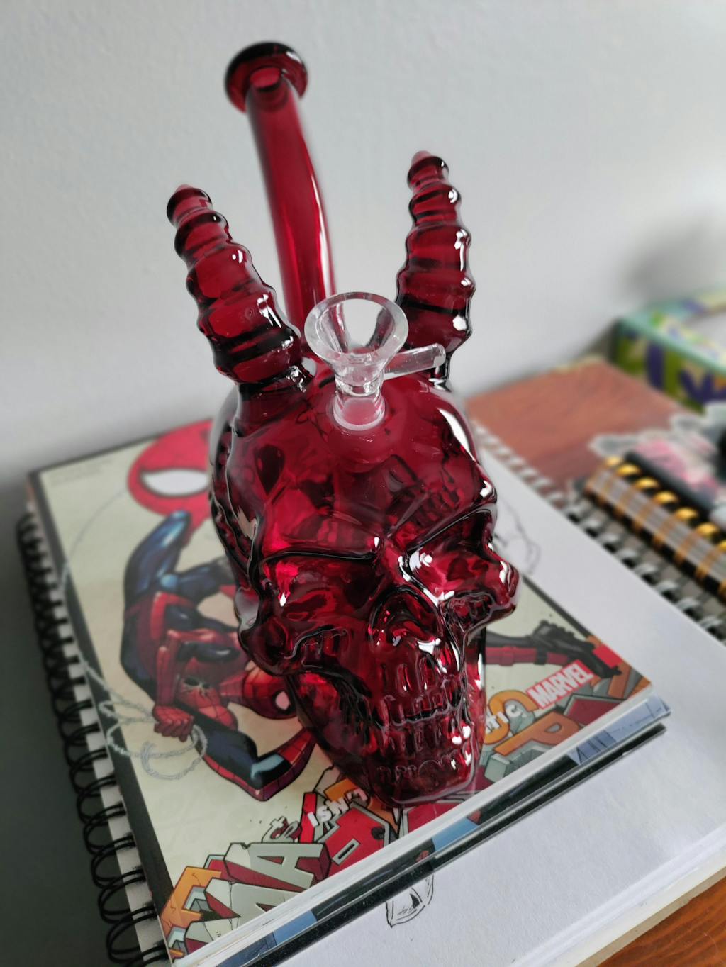 - This breathtaking bong features intricate design details, from ribbed horns to the stitched effect on the side of the skull