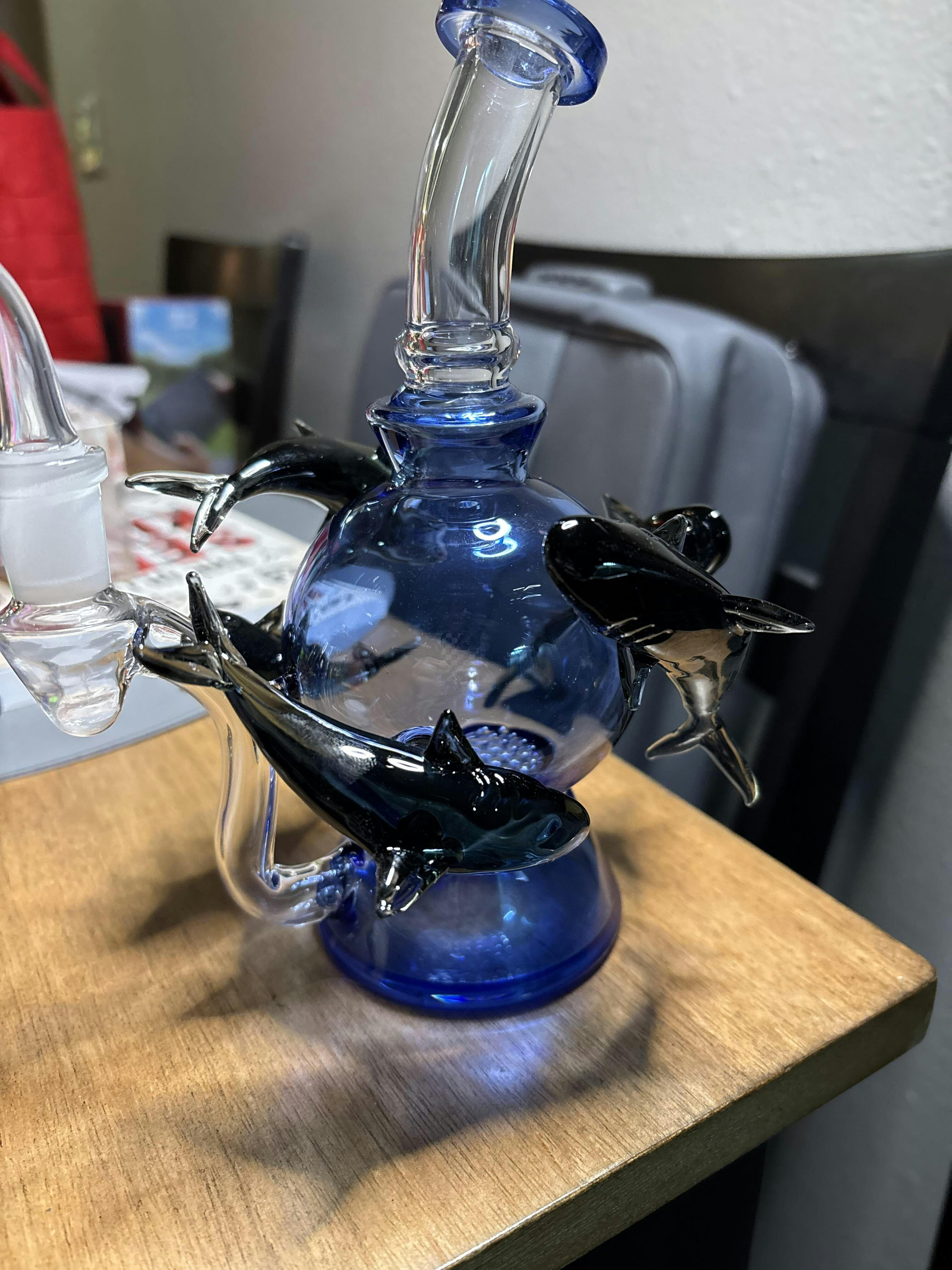 - Made of durable blue and black borosilicate glass