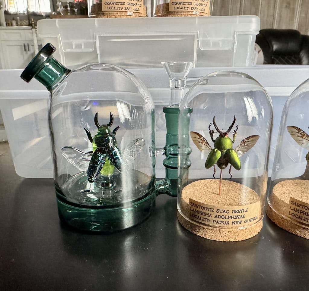 - This cloche style bong features an intricately handcrafted glass beetle inside