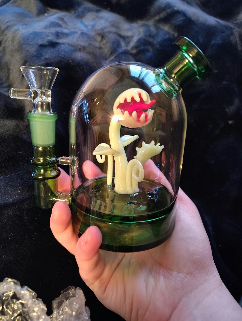 - This cloche style bong features an intricately handcrafted glass venus flytrap inside