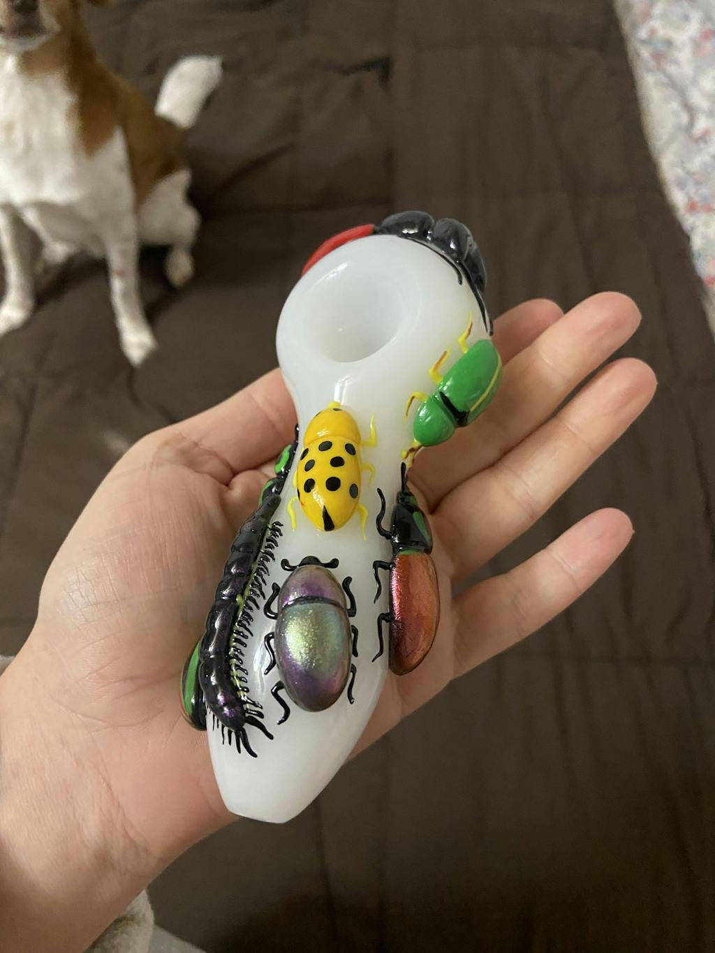 - This classic spoon pipe features 3D realistic bugs made of clay, including various beetles & a centipede
