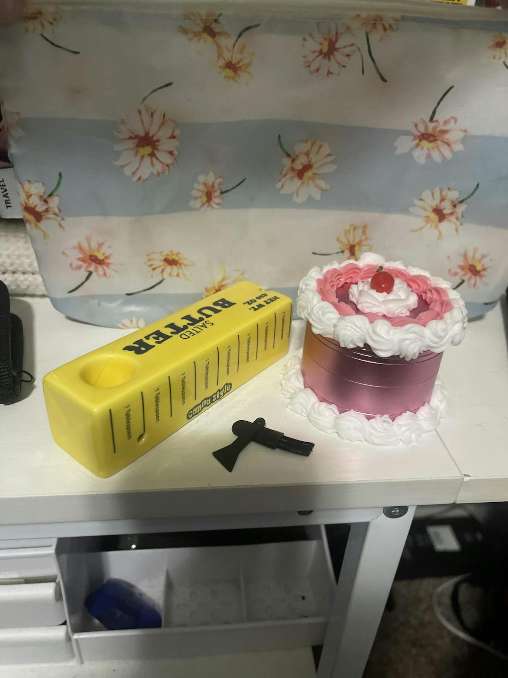 - A classic aluminum grinder featuring realistic icing and cherry on top