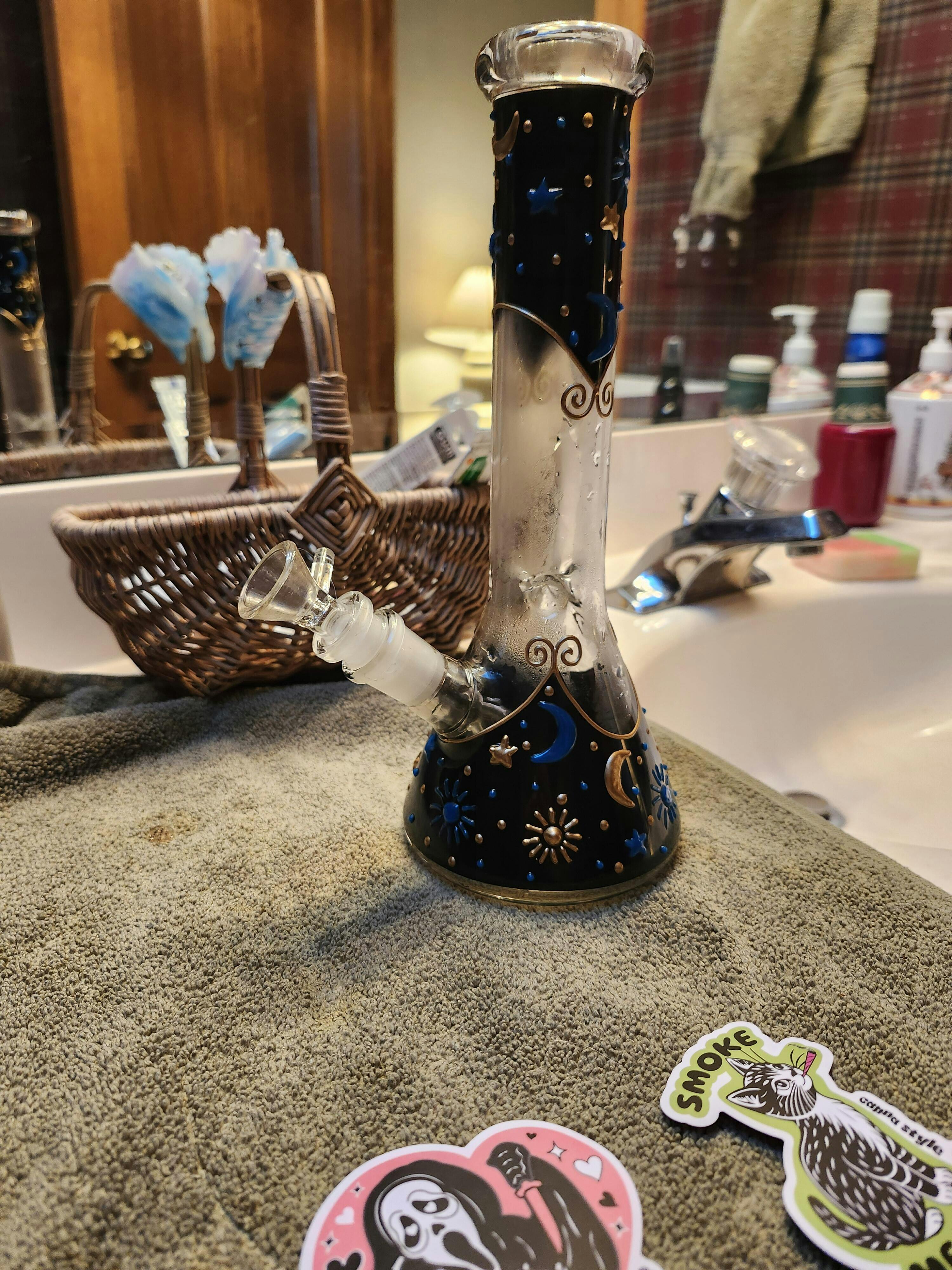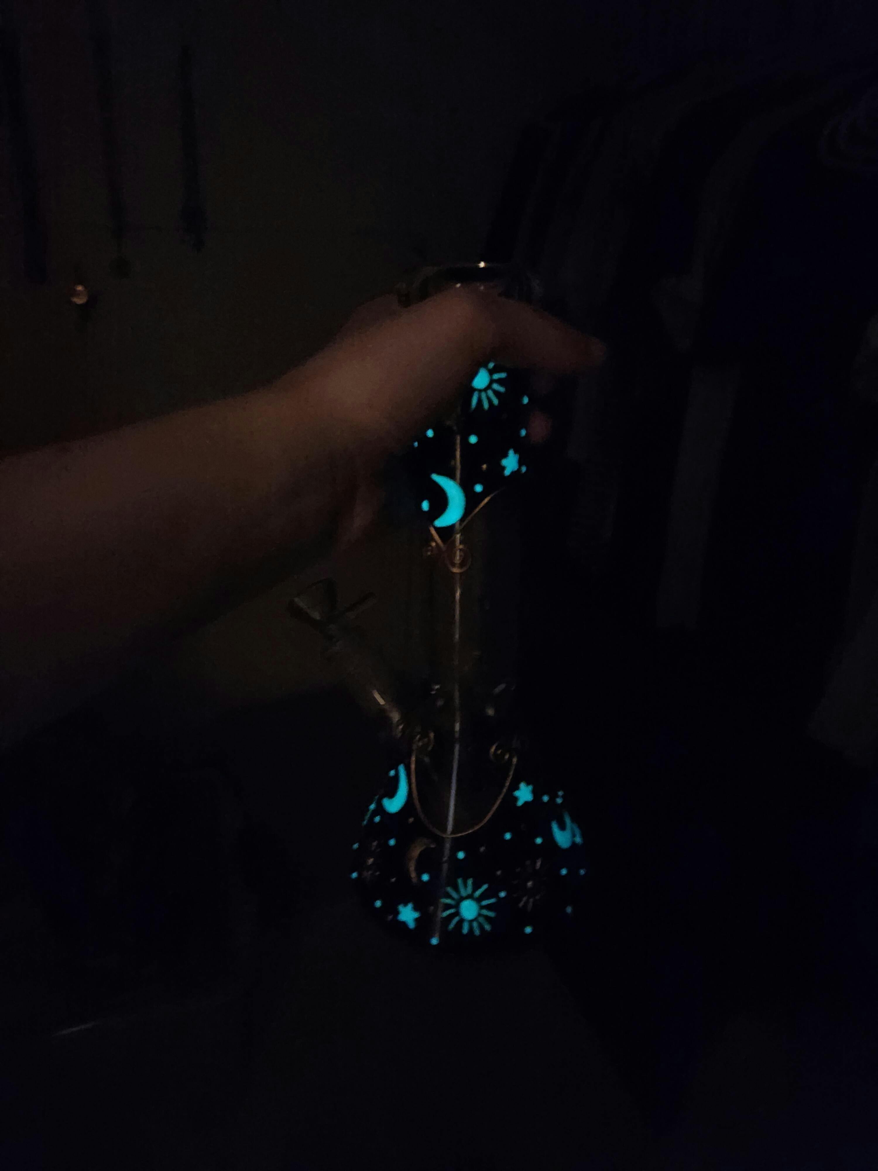 - Blue stars and moons glow in the dark, charge this piece under a light bulb for a few minutes to get the glow-in-the-dark effect