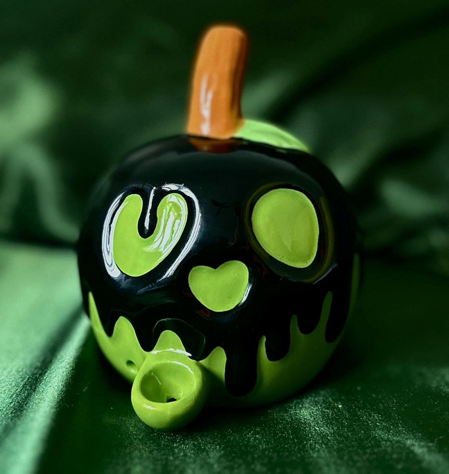 - The mouthpiece is the stem of the apple, carb is on righthand side of the bowl