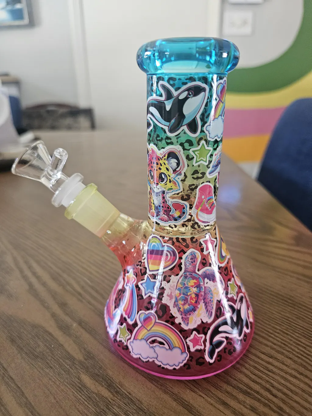 - This mini bong features a rainbow animals print